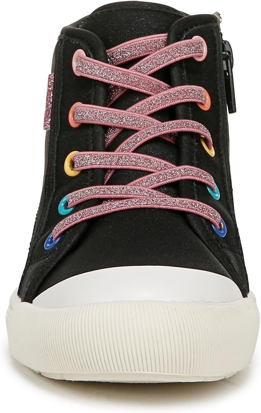 МАТЕРИАЛЫ: Верх из искусственной кожи и текстильная подкладка ПОСАДКА: Внутренняя молния для легкого надевания/снятия ОЩУЩЕНИЯ: Стелька Comfort Insole с амортизацией, комфортом и поддержкой свода стопы ДВИЖЕНИЕ: Лёгкая, гибкая конструкция движется вместе с вами УДОБНАЯ ГИБКОСТЬ: Суперэластичная подошва с дополнительным сцеплением и амортизацией СТИЛЬ: Высокие теннисные кроссовки для девочек с эластичной декоративной шнуровкой, задней петлей и спортивной подошвой высотой 1 дюйм