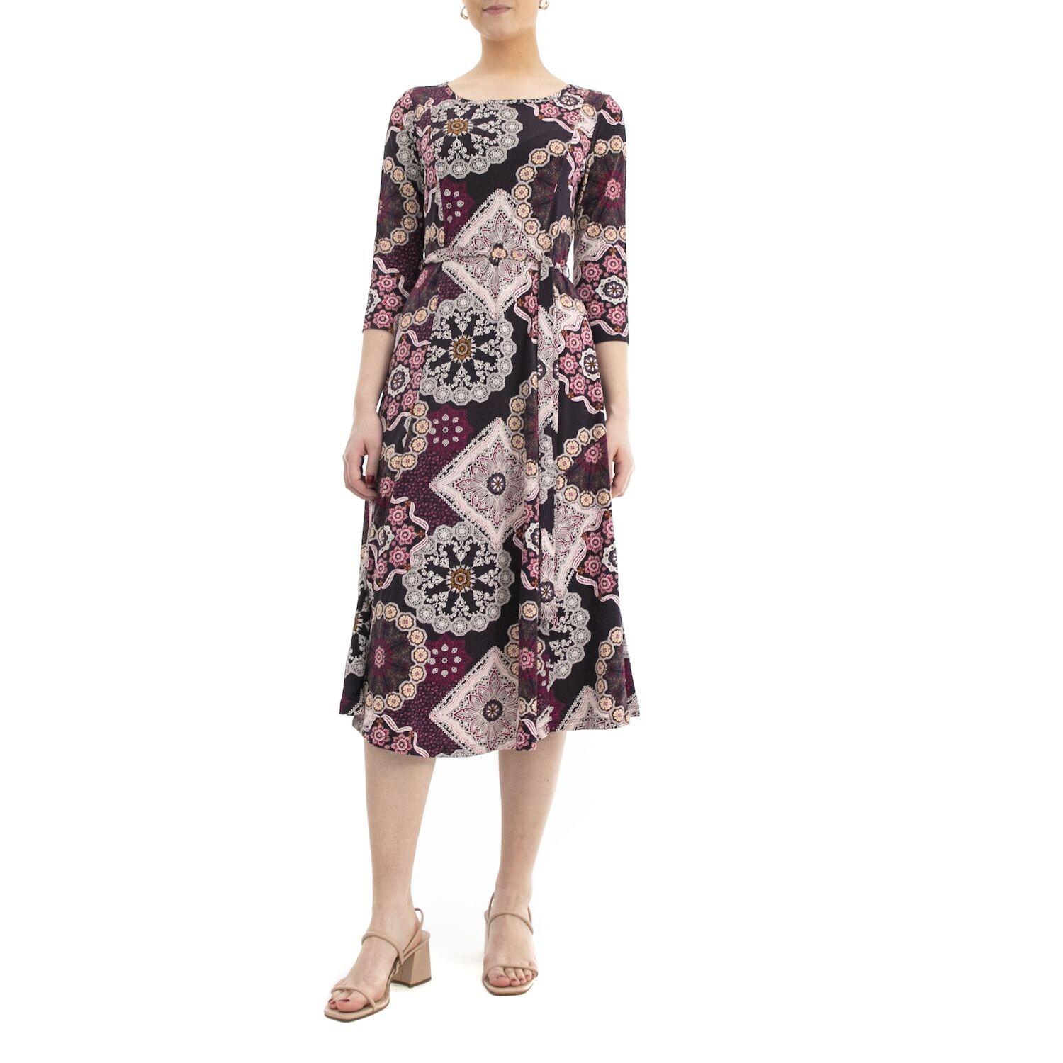 Яркий принт и длина миди придают этому женскому платью Nina Leonard классический вид.