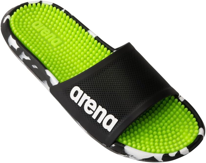 Почти слишком удобные, чтобы снимать их. Наслаждайтесь стильными плавательными сандалиями для арены с приятной массажной стелькой Новая подошва обеспечивает лучшее сцепление на сухих и мокрых поверхностях. Мягкие и легкие материалы для отличной посадки и амортизации Умная массажная стелька picot обеспечивает приятный массажный эффект и держит ноги сухими Идеально подходят для бассейна, пляжа и отдыха 45 процентов этиленвинилацетата, 35 процентов ПВХ, 20 процентов термопластичного полиуретана