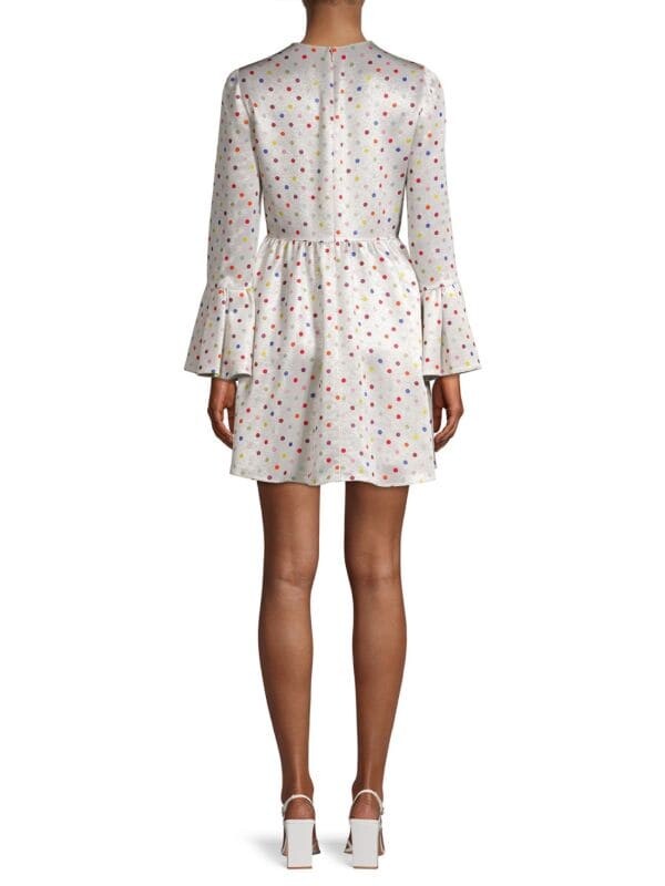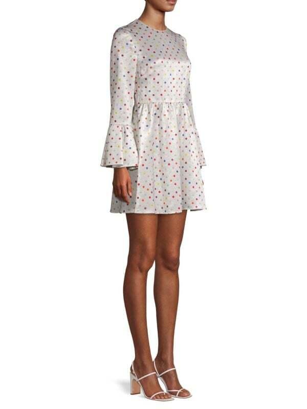 Дерзкое платье цвета металлик с разноцветным принтом в горошек по всей поверхности.Круглый вырез.Длинные рукава-фонарики.Потайная молния сзади.Юбка со сборками.< li>Ацетат/вискоза/металлизированный каучук.Сухая чистка.Сделано в Италии.