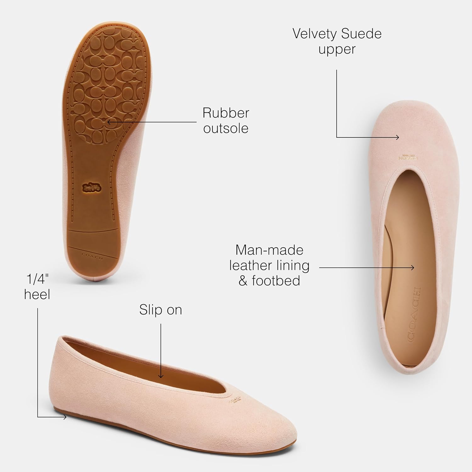 Балетки COACH Women's Houston, Candy Pink Suede