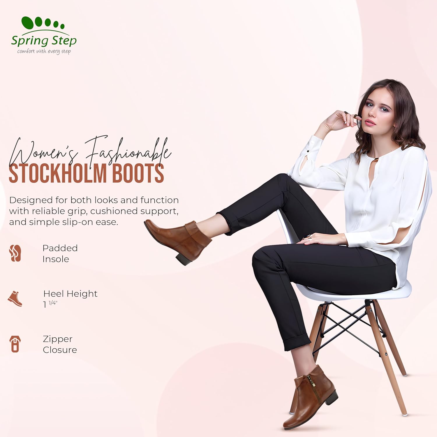 УДОБНЫЙ СТИЛЬ: Эти женские ботинки демонстрируют привлекательный дизайн из полированной кожи с заходящей на ногу частью и деталями, добавляющими уникальный западный акцент вашему образу. Отличное дополнение к вашей обувной коллекции. МЕТАЛЛИЧЕСККАЯ МОЛНИЯ: Легко надевать благодаря отвороту и металлической молнии, экономя время и усилия. Эти ботильоны с высотой голенища примерно 5 дюймов находят баланс между модой и практичностью. КОМФОРТ В ТЕЧЕНИЕ ВСЕГО ДНЯ: В этих женских ботинках мягкая текстильная подкладка и стелька с синтетической кожей и мягкой упаковкой. Мягкая стелька обеспечивает комфорт на протяжении всего дня, делая эти ботинки не только стильными, но и практичными для длительного ношения. ПРОЧНАЯ РЕЗИНОВАЯ ПОДОШВА: Женские ботинки оснащены резиновой подошвой с полированным устойчивым каблуком, который движется вместе с вашей стопой. Высота каблука примерно 1 14 дюйма.