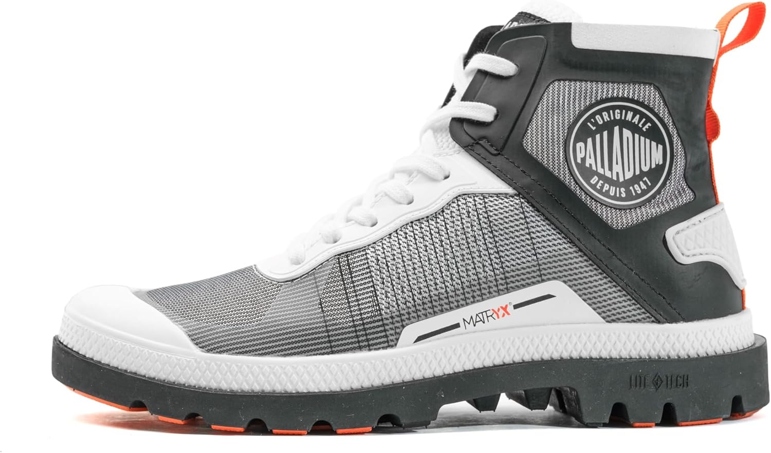 Эти утилитарные внедорожные ботинки выполнены из ткани Matryx r с французским патентом, изготовленной из сетки арамидного волокна, революции в спортивных текстильных технологиях. Сверхлегкие, мягкие, удобные и поддерживающие, они построены на легендарной резиновой подошве Palladium. ЭЛЕМЕНТЫ БРЕНДИРОВАНИЯ: тканая этикетка на язычке / логотип принтом на боковой части / логотип на подошве / переносной логотип на стельке из текстильной сетки. ОСОБЕННОСТИ: плоские шнурки / резиновая защита пятки / петля на пятке из ленты. Веганские.