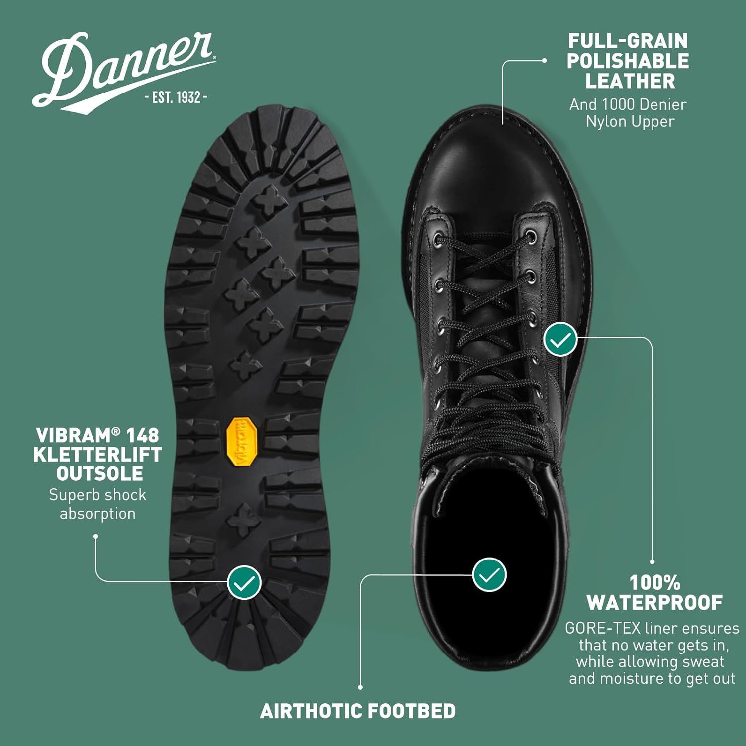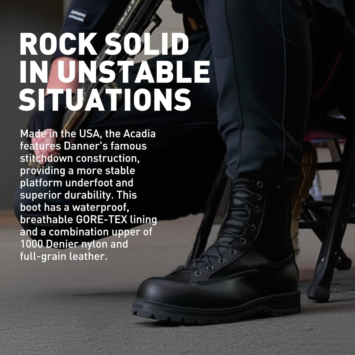 ВОДОНЕПРОНИЦАЕМЫЕ: эти тактические ботинки на 100% водонепроницаемы, с подкладкой Gore- Tex, которая не даёт влаге попадать и не пропускает влагу, сохраняя ваши ноги сухими весь день ПОЛИРУЕМАЯ ПОЛНОЗЕРНИСТАЯ КОЖА: эти служебные ботинки полностью полируемы, что делает их идеальным для полиции, пожарных, скорой помощи и других экстренных служб СКОЛЬЗЯЩАЯ ПОДОШВА: эти чёрные тактические ботинки имеют подошву Vibram Kletterlift, обеспечивающую лучший контакт и сцепление, как масляные, так и скользящие конструкции КОНСТРУКЦИЯ STITCHDOWN: эти ботинки для скорой помощи, пожарных и полицейских имеют ручную сшитую конструкцию, обеспечивающую широкую платформу для повышения устойчивости. BERRY СООТВЕТСТВУЕТ: эти чёрные тактические ботинки изготовлены в соответствии с требованиями США и Berry, что означает, что покупая эти ботинки, вы поддерживаете американские рабочие места вплоть до сырья для производства каждой детали