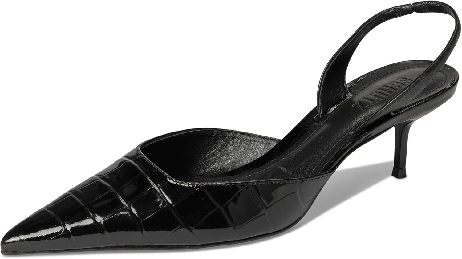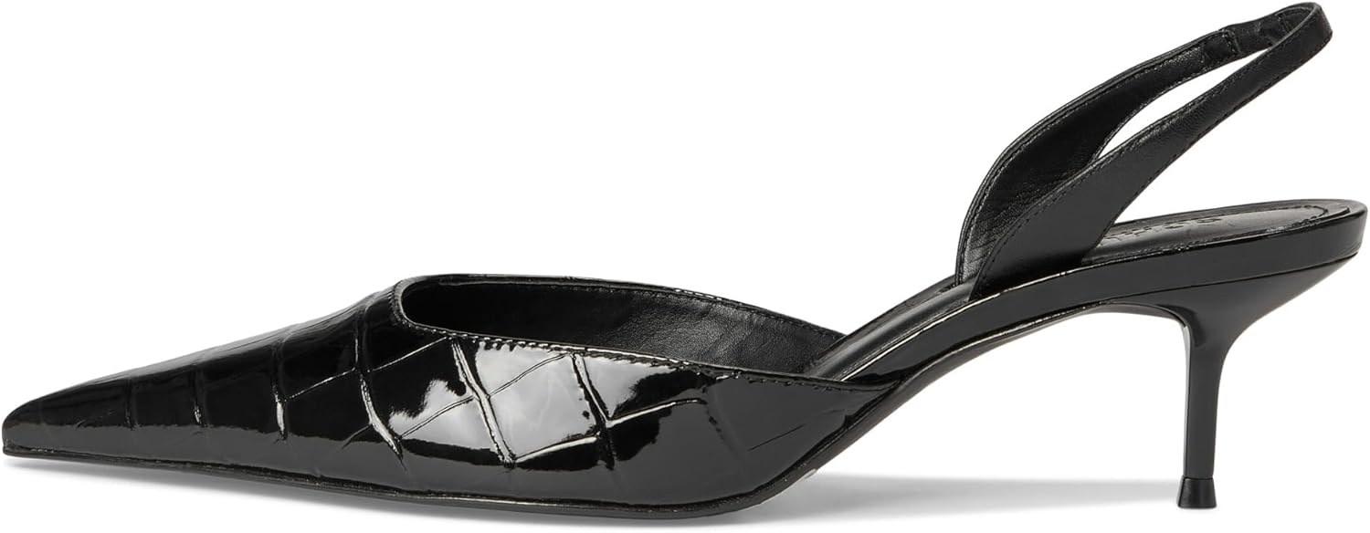 ДИЗАЙН: Элегантные туфли на ремешке с открытой пяткой, выполненные из глянцевой лакированной кожи, с изящным заостренным носком и аккуратным каблуком-кирочкой для вечного стиля