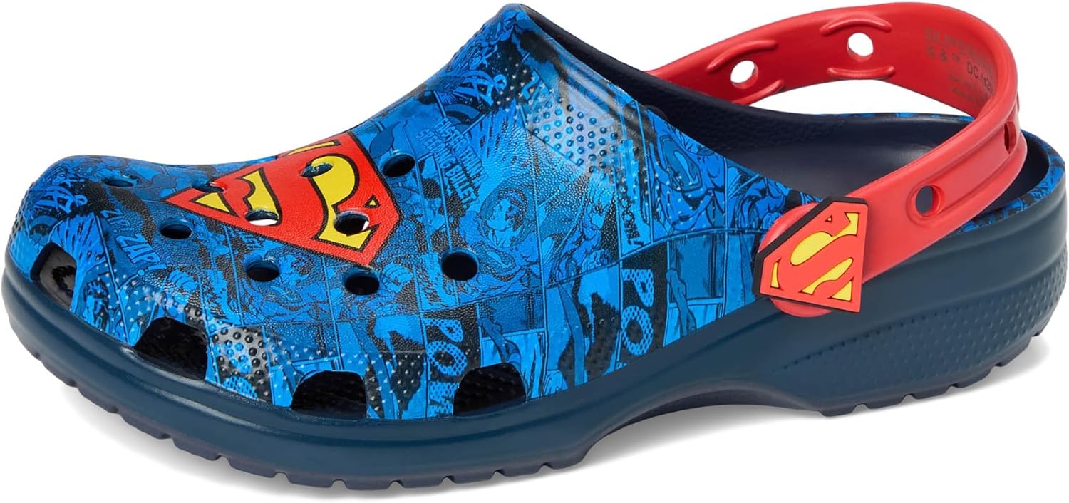 Пусть ваш маленький супергерой сияет в детских клогах Crocs Kids Classic Superman. Невероятно легкие и плавучие, они делают время игры настоящим супер-приключением. Водонепроницаемые, с вентиляционными отверстиями для дыхания и легкой очистки, эти клои имеют: верх и стельку из этиленвинилацетата; неутепленную конструкцию; застежку на ремешок сзади; округлый носок.