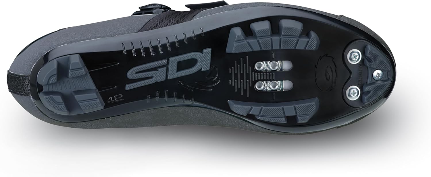 TECNO-3 SYSTEM: Позволяет закрыть обувь по всей длине, адаптировать верх под форму стопы и таким образом получить индивидуальную посадку. Надежные системы закрытия Sidi, полностью заменяемые, были улучшены новым типом троса, который позволяет быстро регулировать его с чрезвычайной легкостью. СИСТЕМА FIRMOR: Закрепите ногу с помощью технологии Firmor, которая обеспечивает бесконечную регулировку посадки в мгновение ока, предназначенную для плавной регулировки во время езды. Открытая ячейковая сетка спереди разработана так, чтобы обувь могла дышать и выпускать внутренний пар. MTB SR17 SOLE: Легкая подошва, которая обеспечивает идеальный баланс между жесткостью и мягкостью благодаря нейлону и углеродному волоконам. SR17 представляет собой высшую жесткость для педалирования и гибкость для ходьбы. Нейлоновая подошва, оснащенная заменяемой резиновой вставкой, обеспечивает максимальное сцепление в любой ситуации и повышает комфорт ходьбы.