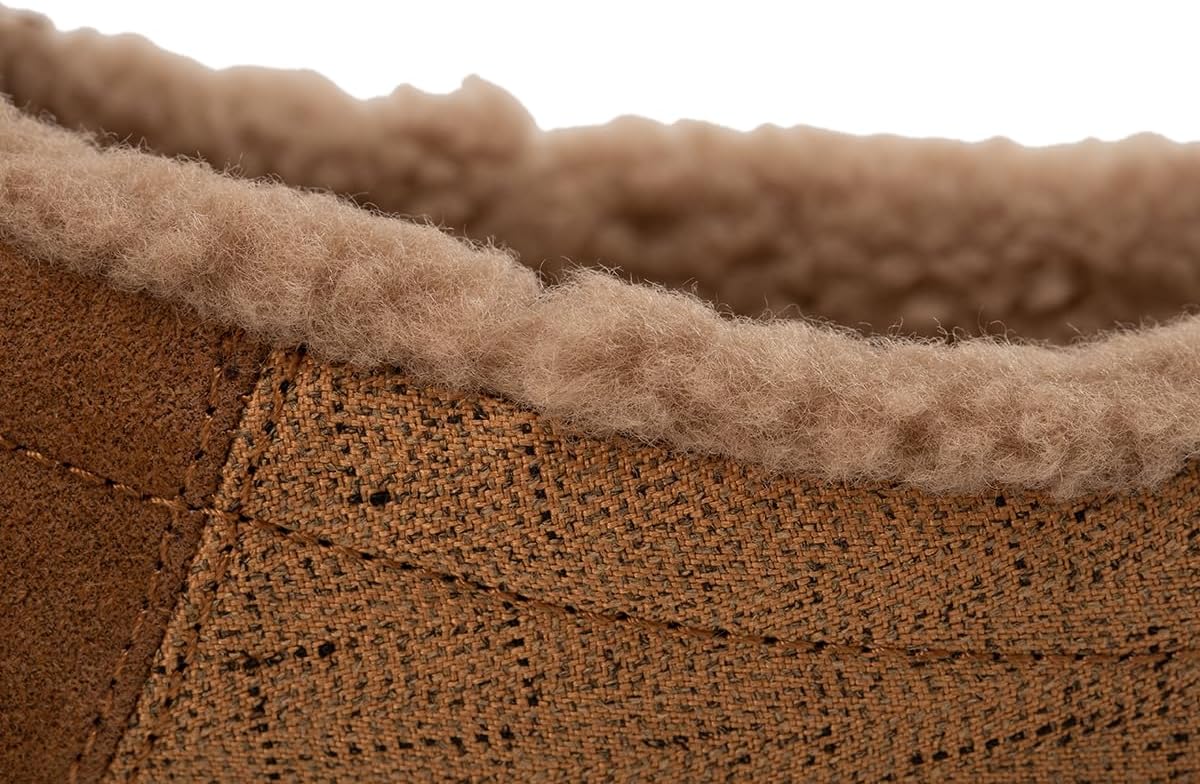 Натуральная замша и текстиль с текстурой: Обеспечивают прочную, роскошную и стильную внешнюю поверхность. Сверхмягкая подкладка из искусственного меха: Гарантирует максимальное тепло и уют круглый год. Универсальный дизайн: Можно носить с носками и без них. Стелька для полного комфорта: Содержит купол для плюсневой кости, глубокую чашку пятки, амортизацию передней части стопы и анатомически спроектированную опору для свода для превосходной амортизации и длительного комфорта.
