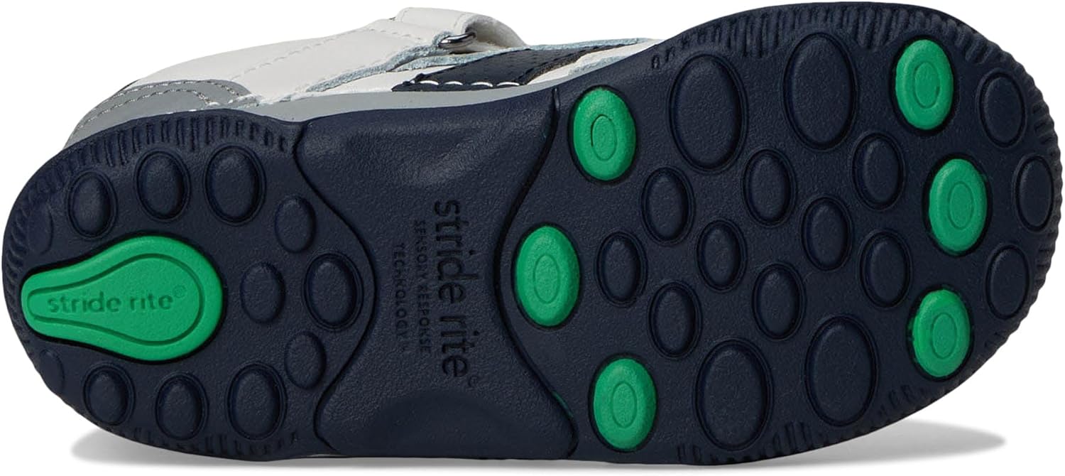 Детские премиальные кроссовки: Эти детские кроссовки изготовлены из качественной кожи и замши с бесшовной конструкцией, повторяющей естественную форму стопы; сенсорные вставки и протекторная подошва обеспечивают многоплоскостную гибкость, лучшее сцепление и стабильность Удобные кроссовки для малышей: Эти детские обувные модели оснащены нашей фирменной стелькой с эффектом памяти для повышенного комфорта Легко надеваются и снимаются: Эти милые детские кроссовки имеют регулируемую застежку-липучку с эластичными декоративными шнурками Обувь SRTech для первых шагов: Наша уникальная технология Sensory Response Technology поддерживает проприоцепцию, то есть то, как суставы и мышцы передают сигналы в мозг для координации движений, помогая развивать мелкую моторику, необходимую детям для исследования окружающего мира