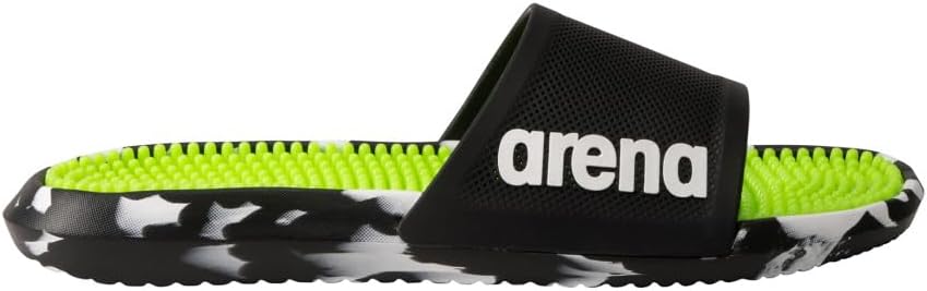 Почти слишком удобные, чтобы снимать их. Наслаждайтесь стильными плавательными сандалиями для арены с приятной массажной стелькой Новая подошва обеспечивает лучшее сцепление на сухих и мокрых поверхностях. Мягкие и легкие материалы для отличной посадки и амортизации Умная массажная стелька picot обеспечивает приятный массажный эффект и держит ноги сухими Идеально подходят для бассейна, пляжа и отдыха 45 процентов этиленвинилацетата, 35 процентов ПВХ, 20 процентов термопластичного полиуретана