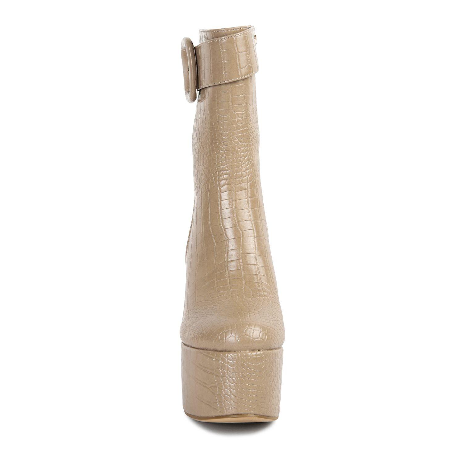 Сделайте смелое заявление с ботильонами на платформе London Rag Bumpy. Эти ботинки имеют текстуру с крокодиловым принтом и массивный блочный каблук, который идеально подходит для придания остроты любому наряду. Силуэт длиной до щиколотки делает их универсальными и подходящими для любого случая. Сделайте свою игру моднее с этими модными ботинками.
