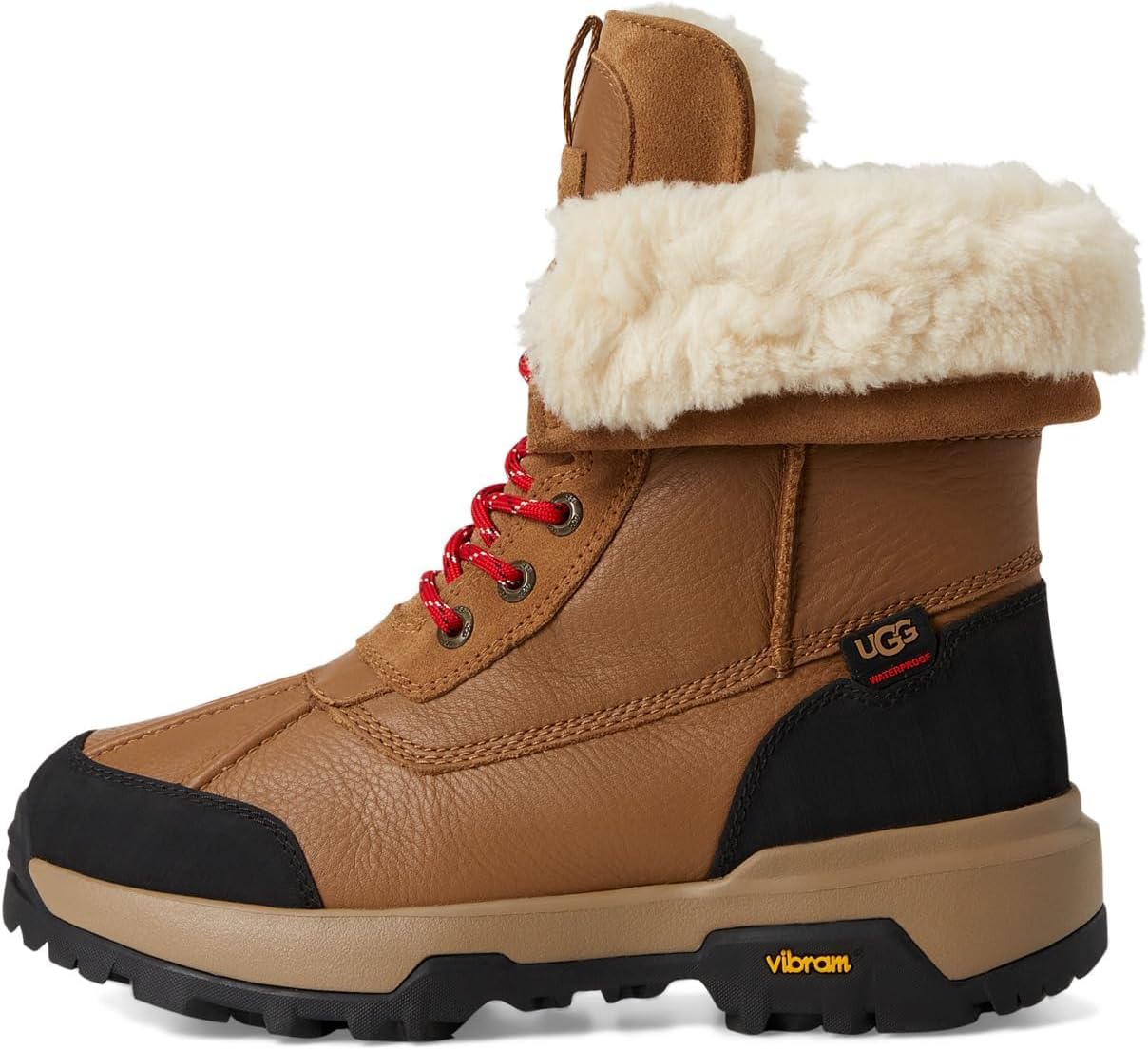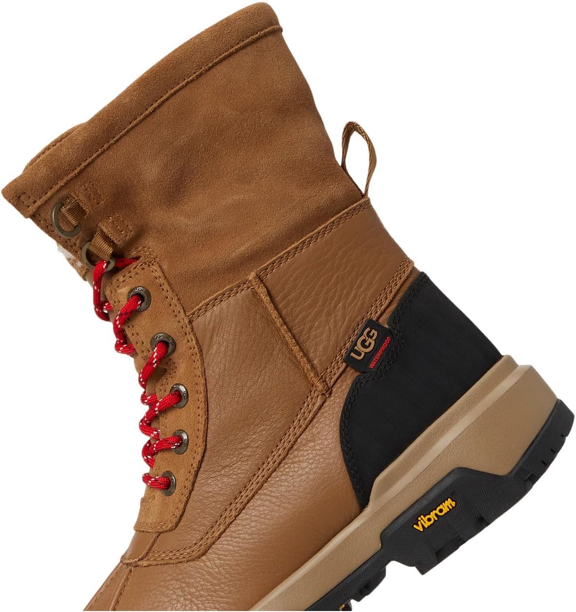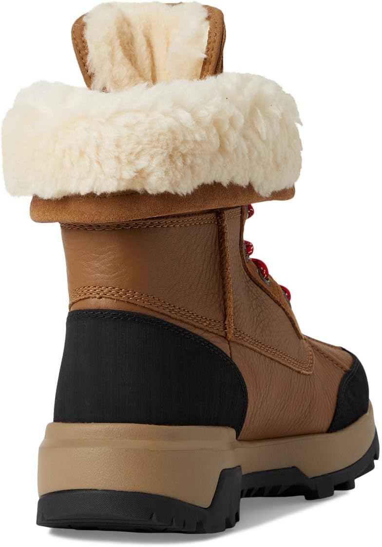 Водонепроницаемый конструкция ботинка с водонепроницаемой мембраной, водонепроницаемая кожа, водонепроницаемая замша, вставка Подкладка на верхней части и стельке из шерсти UGGplush толщиной 17 мм Подошва Vibram с резиновой смесью ICETREK, средний слой из EVA Изоляция 3 M Xerogel, рассчитана на холодную погоду до -32 C Верх из кожи с манжетой, которую можно подвернуть