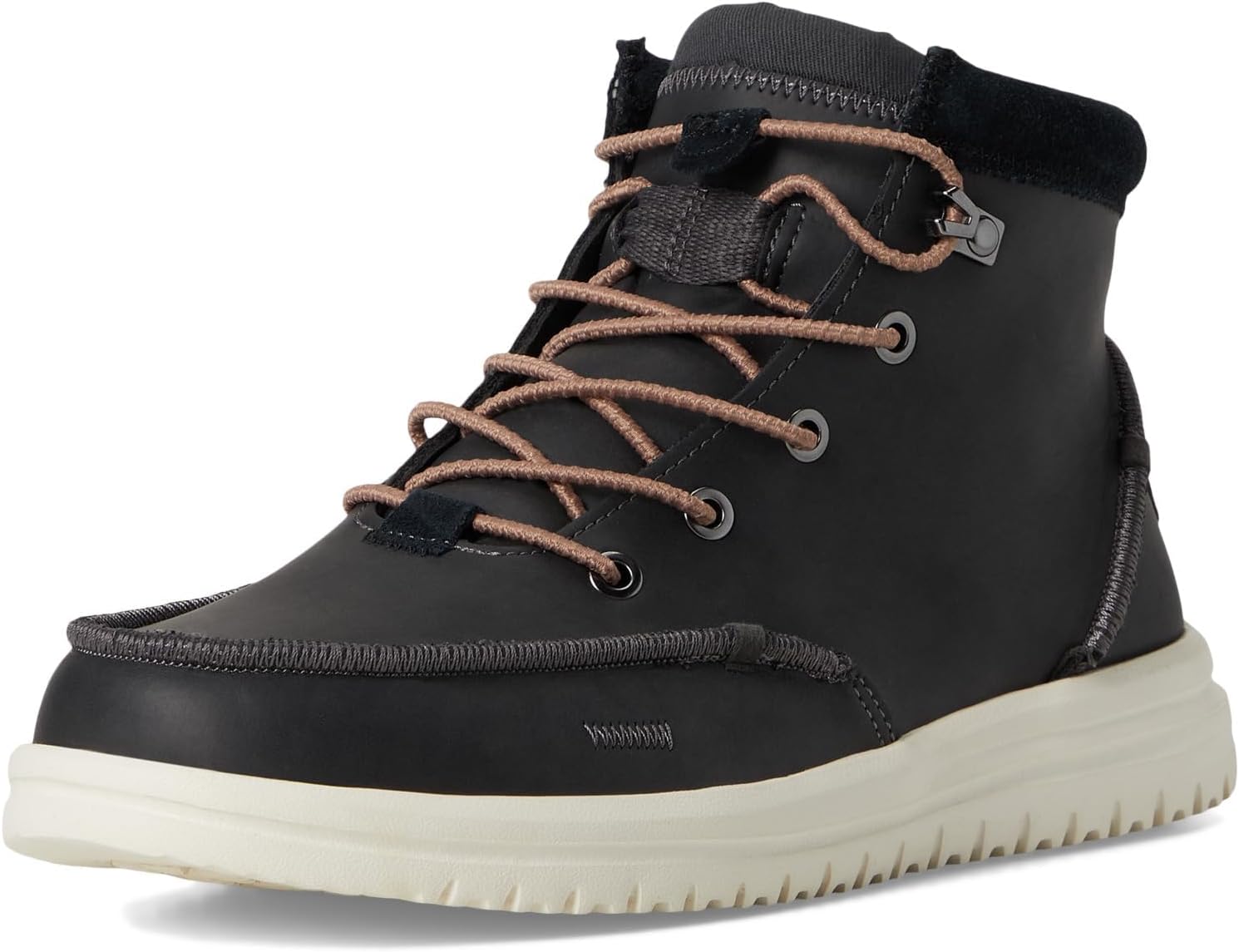 Теплые ноги благодаря выбору ботинок Hey Dude Bradley Classic Tumbled. Наша удобная система надевания и свежий вид при любой погоде. Водоотталкивающий верх из премиальной кожи сочетается с легкой, гибкой подошвой для комфортного и стильного образа в любой сезон. Подкладка из шерсти и полиэстера с полиуретановой стелькой. Эластичная шнуровка спереди с задней петлей для удобства. Ботинки по щиколотку. Логотип на задней части.