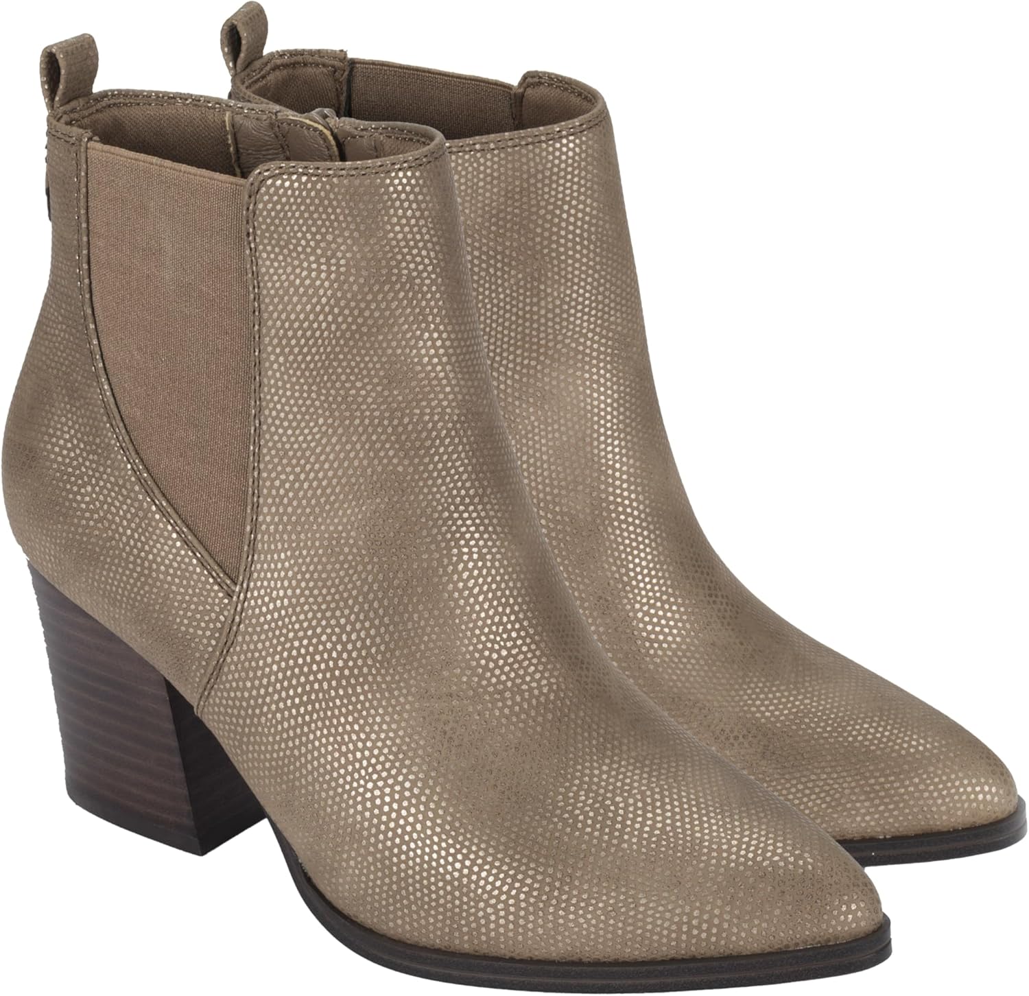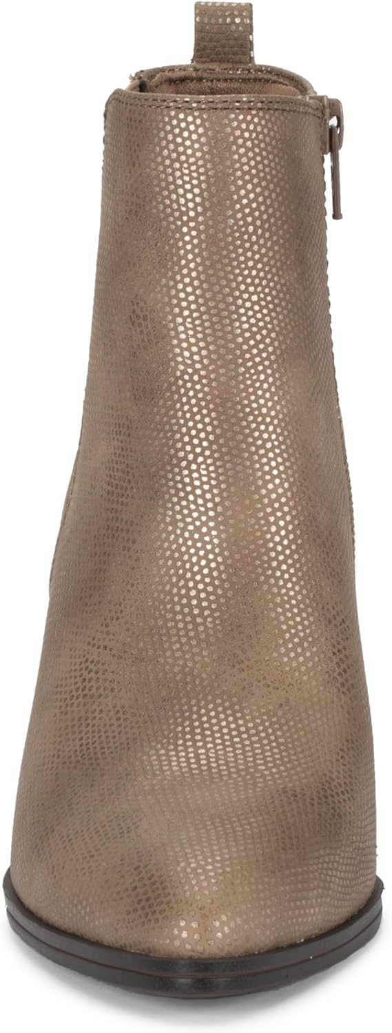Высота каблука 2 3/4 дюйма, высота голенища 4 1/2 дюйма; обхват 9 дюймов. Верх из синтетических материалов/эластика/каблук из искусственной кожи. Амортизирующая стелька для комфорта; легкая, гибкая подошва. Внутренняя застежка-молния для легкого надевания и снятия.