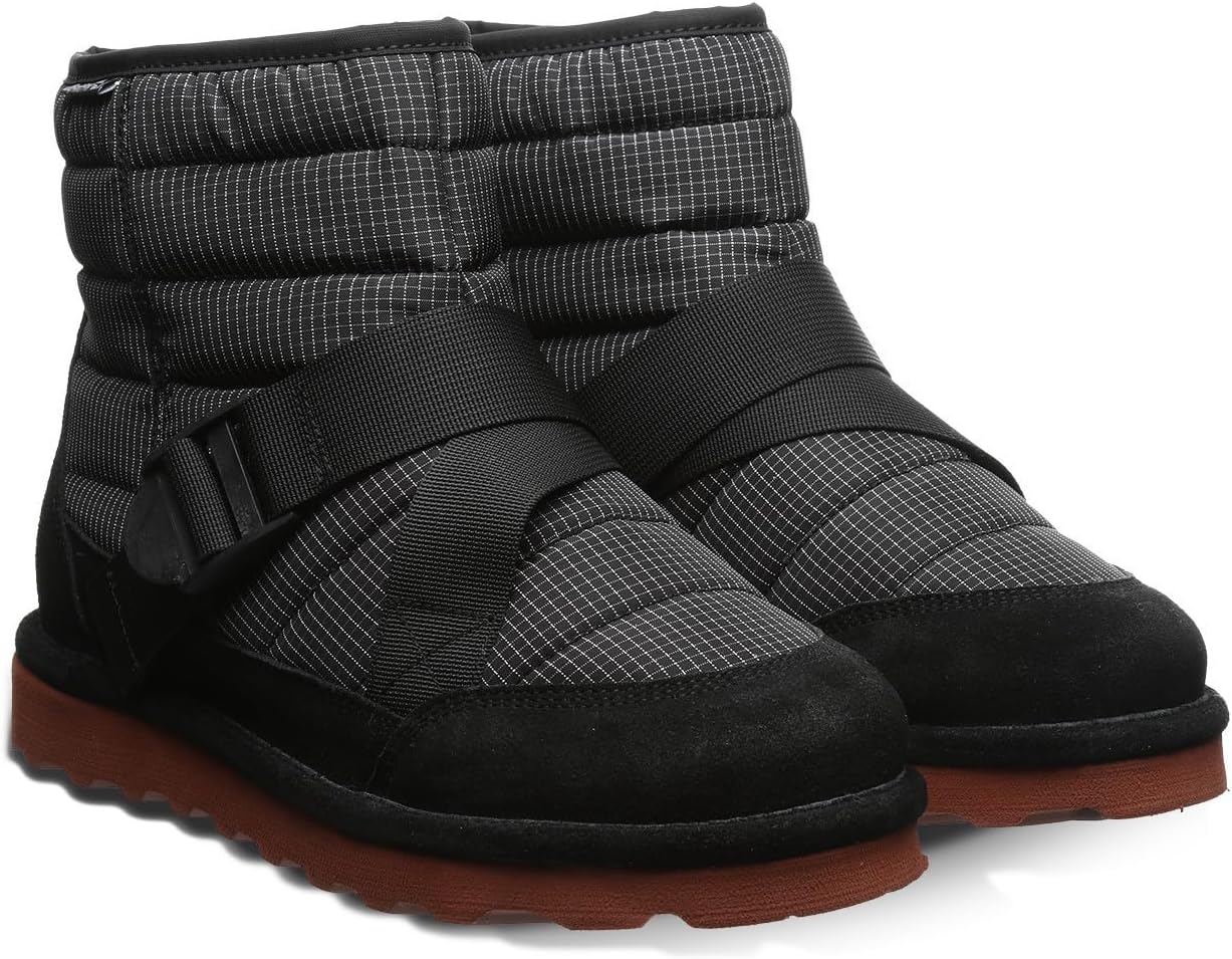 КОМФОРТНЫЙ МАТЕРИАЛ ВЫСОКОГО КАЧЕСТВА: Если вы ищете уникальные, стильные зимние ботинки, которые не слишком громоздкие, попробуйте наш стиль Connor из замши и нейлона. Они оснащены регулируемым ремешком для комфортной посадки. Какая бы ни была погода в этом сезоне, эти ботинки станут вашими любимыми. ПРОЧНАЯ ПОДКЛАДКА И ДИЗАЙН: В этих ботинках есть подкладка из смеси шерсти, которая регулирует температуру тела, чтобы ваши ноги оставались в тепле. Стелька из овчины добавляет мягкости и снижает усталость ног. ПРОЧНАЯ ПОДОШВА ДЛЯ ИСПОЛЬЗОВАНИЯ ВНУТРИ И НА УЛИЦЕ: Легкая подошва из вспененной резины делает эти мужские ботинки идеальным выбором как для дома, так и для улицы. BEARCOAT: Bear Coat, наша водо- и пятноустойчивая обработка без PFOA. Bear Coat - идеальное решение для того, чтобы ваши любимые ботинки дольше выглядели как новые!
