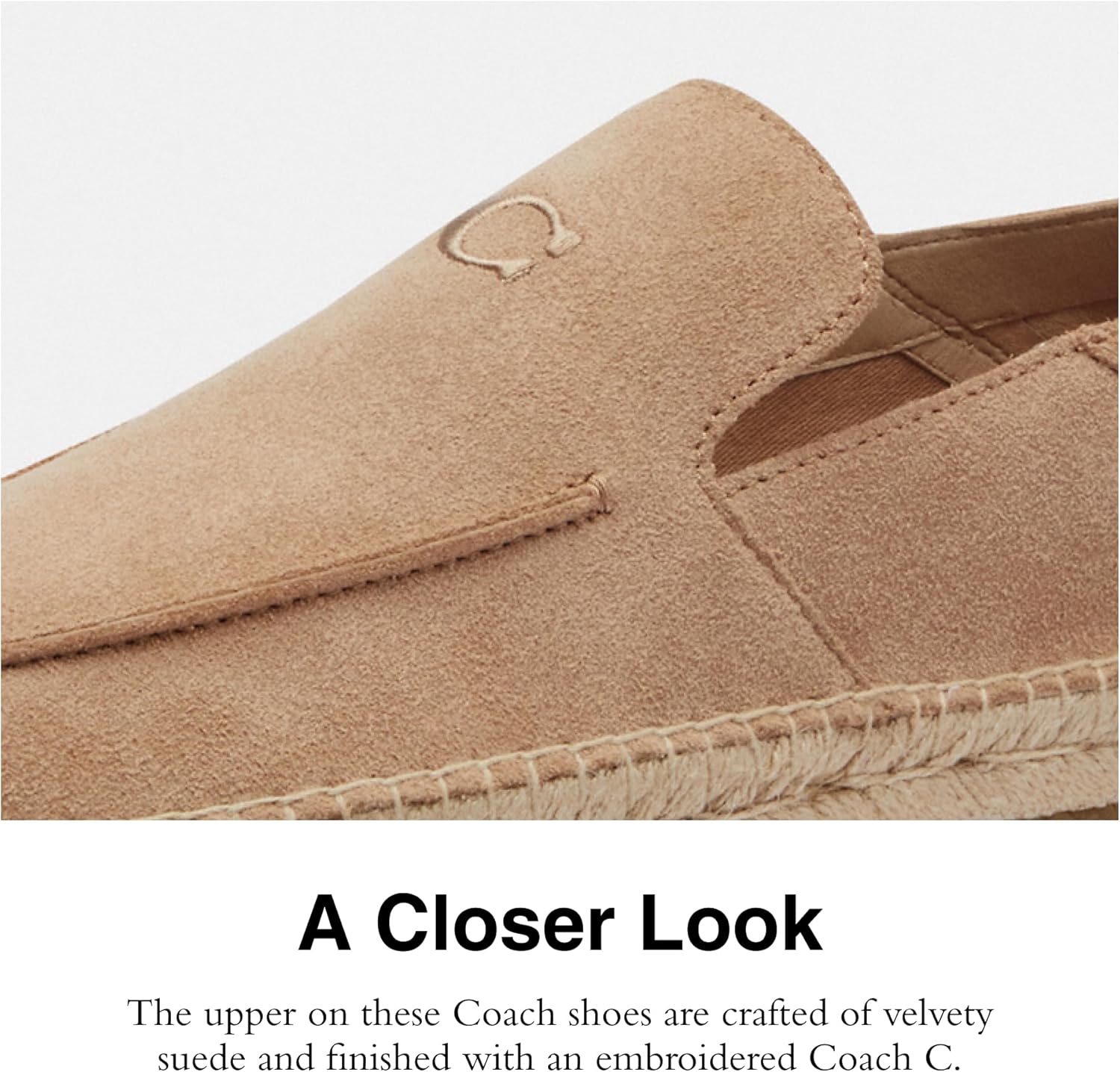 Примечания редактора: Мужская обувь без шнурков Reilly сочетает расслабленную лёгкость эспадрилий с верхом из замши и лёгкой подошвой из крепа Верх из замши: Верх этих мужских туфель Coach изготовлен из бархатистой замши Комфорт на весь день: Удобные туфли без шнурков с стелькой из искусственной кожи и подошвой из крепа Все в деталях: Верх из замши, подкладка и стелька из искусственной кожи, подошва из крепа, без шнурков Это COACH: Иметь смелость быть настоящим с 1941 года. COACH - оригинальный американский дом кожи с наследием мастерства и сообществом, которое поддерживает смелость жить искренне