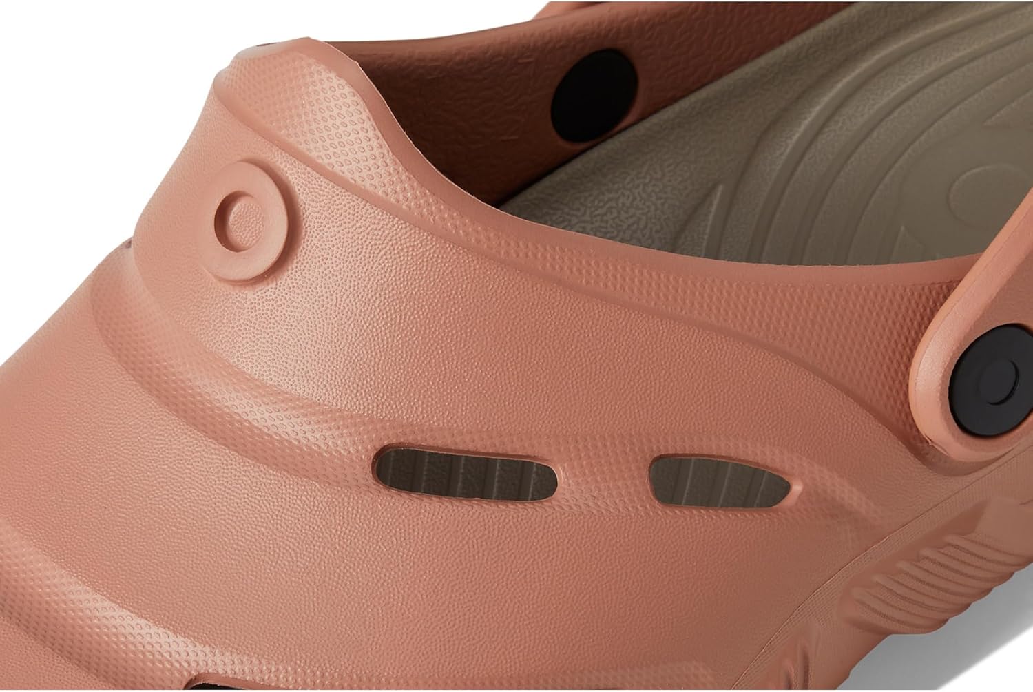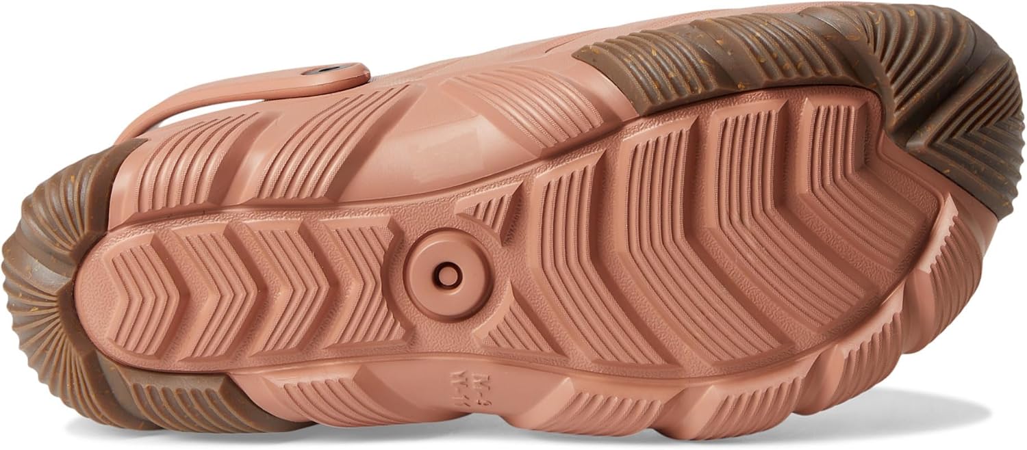 Водоустойчивая конструкция не повреждается избыточной влагой Бесшовный верх из биологически основанного ЭВА обеспечивает легкую и удобную посадку Бесшовная интегрированная средняя подошва из ЭВА обеспечивает отличный комфорт и долговечность Стелька с двойной плотностью, которую можно вынуть, обеспечивает водостойкий и легкий комфорт Пяточный ремень с фиксацией держит ремень на месте, когда он не используется Противоскользящая подошва SATRA TM-144