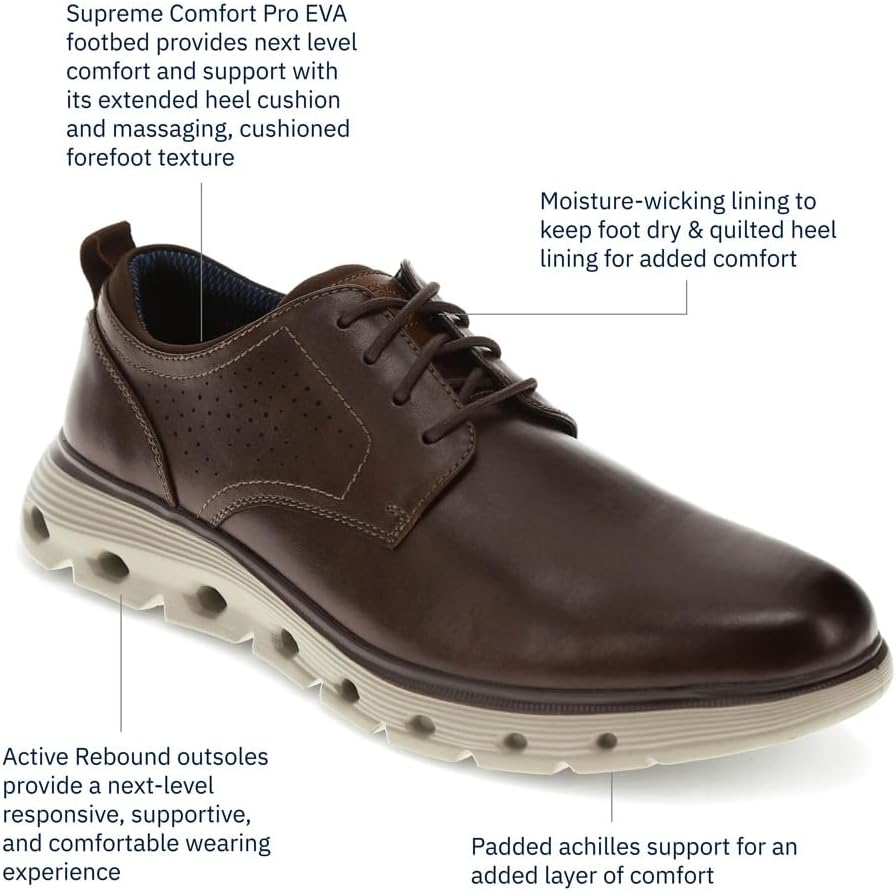 Инновационные технологии обуви. Разработанные для долгосрочного комфорта, эти Oxford оснащены стелькой Dockers Supreme Comfort PRO EVA с удлиненной подушкой для каблука и поддержкой ахиллеса сухожилия. С массажирующей текстурой передней части стопы эти мужские кроссовки повышают комфорт, делая каждый шаг легким. Активная подошва с отскоком. Разработанная для гибкости и отзывчивости, эта продвинутая подошва движется естественно вместе с вашей ногой. Он впитывает нагрузку и обеспечивает устойчивую основу, чтобы вы чувствовали себя комфортно и уверенно с утра до вечера. Внутренняя подкладка этих оксфордов активно отводит влагу от стопы, помогая сохранять свежую и сухую атмосферу. Кроме того, стеганая микрофибра на столешнице добавляет дополнительный оттенок расслабления и дыхаемости. Материалы высокого качества. Гладкая синтетическая кожаная верхняя часть придает отполированный вид, оставаясь при этом легкой и удобной в ношении.