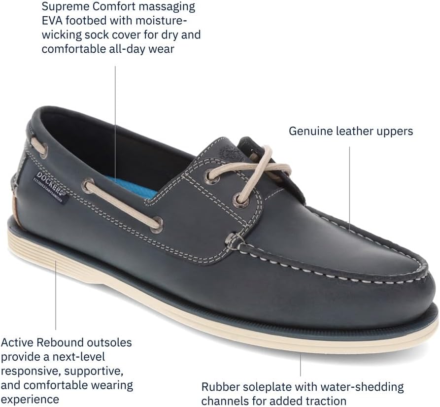 ОТЗЫВЧИВАЯ ПОДДЕРЖКА - С подошвой Dockers Active Rebound, эти мужские топсайдеры обеспечивают превосходный комфорт и поддержку. Инновационная подошва адаптируется к вашим движениям, обеспечивая отзывчивость и поддержку при каждом шаге. КОМФОРТ НА ВЕСЬ ДЕНЬ - Новая массажная стелька Supreme Comfort из ЭВА гарантирует исключительную амортизацию. В сочетании с впитывающей влагу подкладкой, она поддерживает ваши ноги сухими и комфортными весь день. ВЕНТИЛЯЦИЯ И УСТОЙЧИВОСТЬ - Стеганая подкладка из микрофибры внутри придает дополнительный уровень комфорта; резиновая подошва с каналами для отвода воды обеспечивает дополнительное сцепление. Эти функции вместе сохраняют ноги удобными и устойчивыми. НАСТОЯЩАЯ КОЖА - Изготовленные из высококачественной натуральной кожи и премиальных легких материалов, эти мужские туфли предлагают изысканный вид и долговечность.