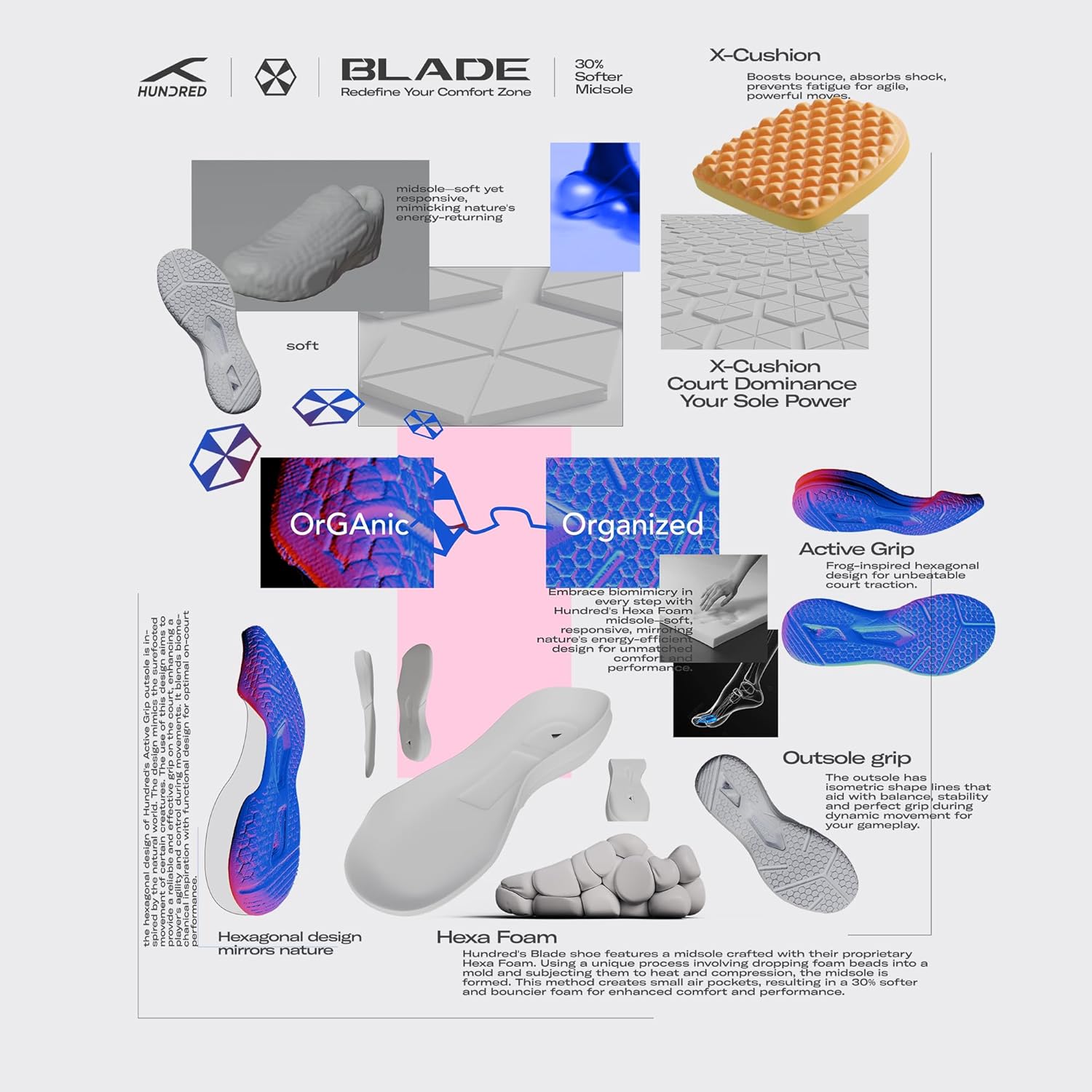 Сделаны из смеси TPU, сетки и резиновых материалов для легкости и прочности. Подошва из пены Hexa обеспечивает исключительную амортизацию и поддержку для повышения комфорта во время длительных матчей. Вдохновленный природой шестиугольный дизайн придает уникальный эстетический вид и оптимизирует сцепление и стабильность. Нескользящая подошва не оставляет следов, обеспечивая надежное сцепление, подходит для игр в помещении и на открытом воздухе. Комплектация: 1 пара обуви.