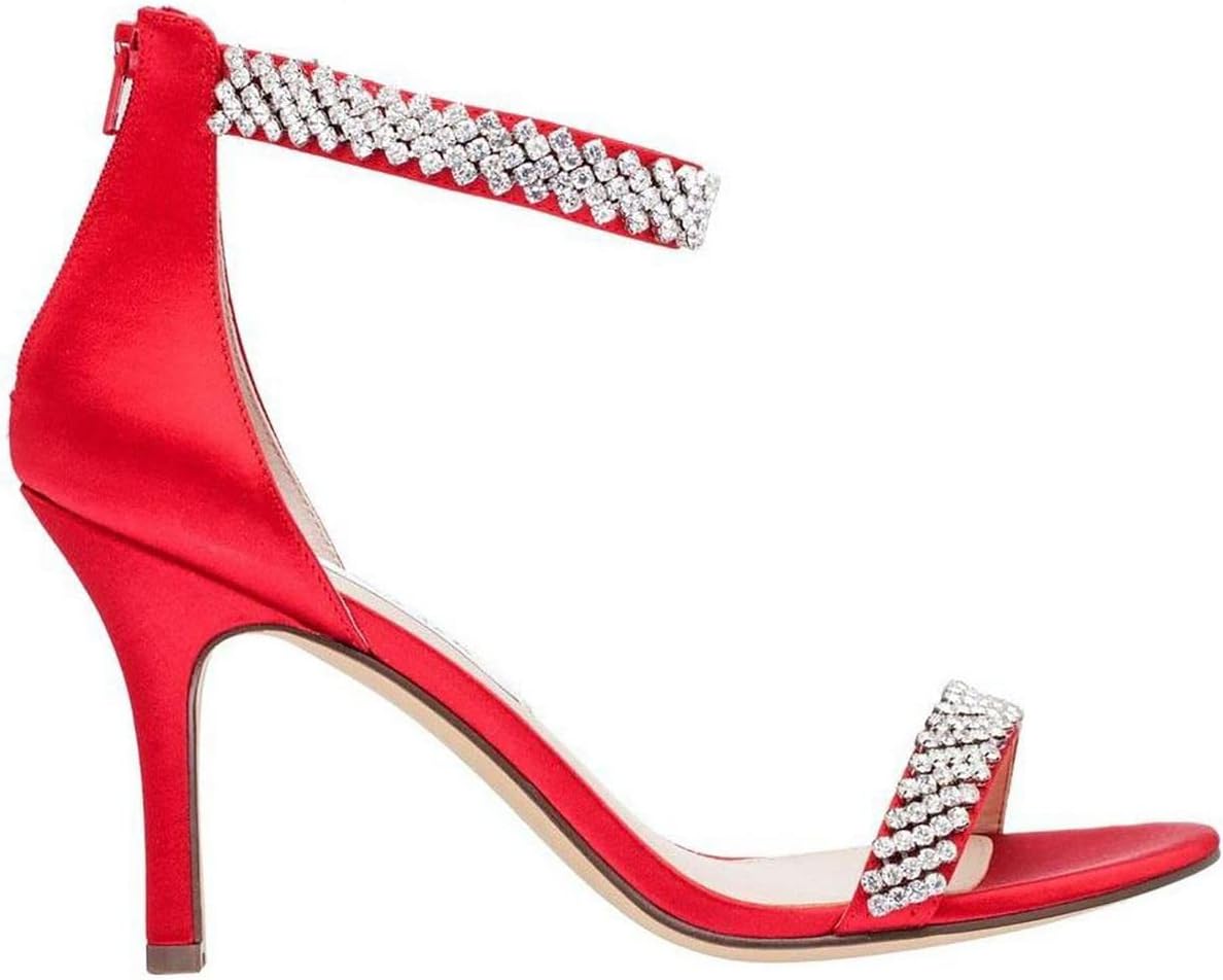 Высота каблука: 3 1/2 дюйма 89 мм Форма носка: миндаль Кристаллы на верхней части и на ремешке вокруг щиколотки Застежка: молния сзади Легкая амортизация стельки Верх из синтетического материала Подошва из кожи Импорт