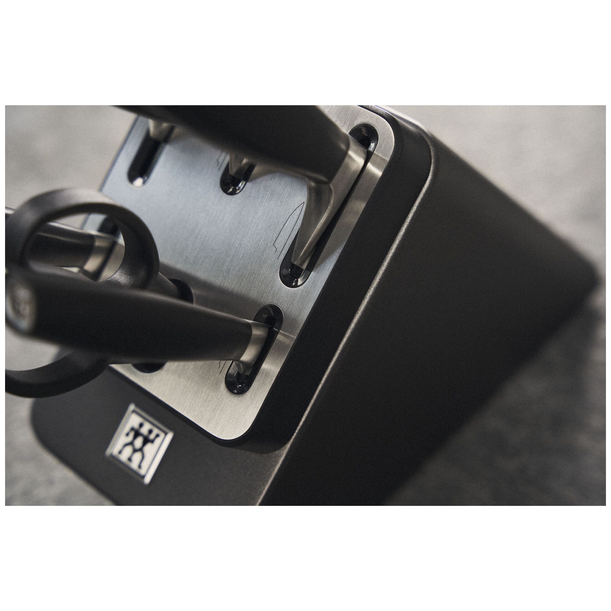 Серия ZWILLING ALL*STAR — это идеальное сочетание современного стиля и инновационных технологий. Главная особенность этого набора — интеллектуальная система заточки KIS (Keep It Sharp). В пазы для ножей с прямой режущей кромкой встроены керамические точильные камни. Каждый раз, когда вы достаете или возвращаете нож в блок, лезвие автоматически правится под идеальным углом. Это гарантирует, что ваши инструменты всегда будут бритвенно острыми без лишних усилий.