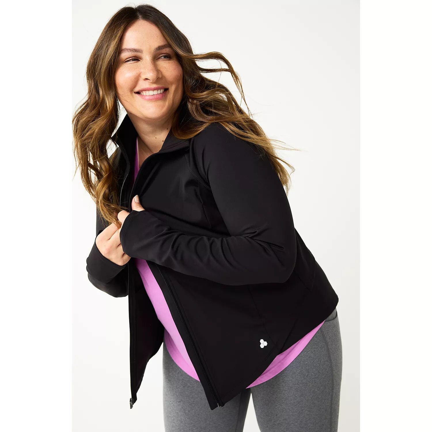 В этой женской спортивной куртке Tek Gear с застежкой-молнией спереди чувствуйте себя комфортно независимо от того, находитесь ли вы в движении или просто находитесь дома.