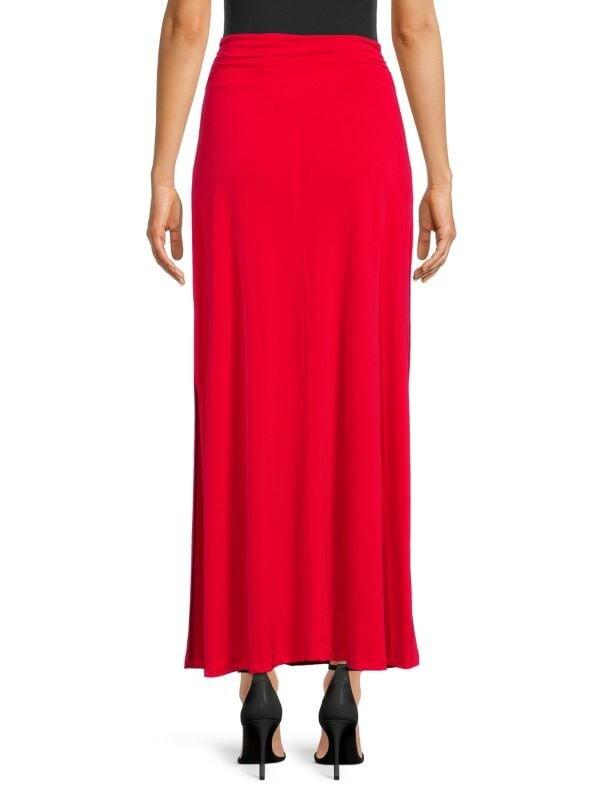 Длинная однотонная юбка макси с рюшами на талии и боковыми разрезами.Сборки на талии.Облегающая модель.Боковые разрезы.Полиэстер. /спандекс.Машинная стирка.Сделано в США.