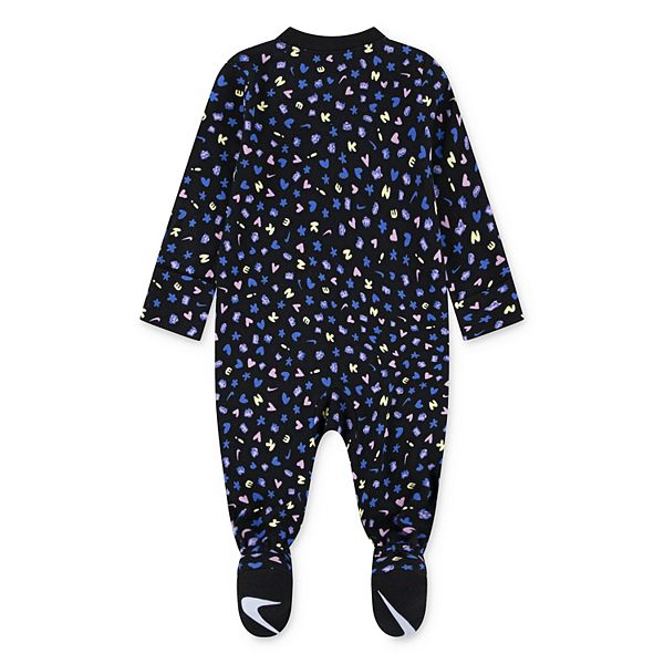 Окутайте свою малышку уютом и комфортом с помощью этого стильного комбинезона для девочек от Nike, выполненного из гладкой трикотажной ткани с привлекательным принтом по всей поверхности. Удобная застежка-молния, закрытые ступни и очаровательные манжеты-варежки для размеров от 0 до 6 месяцев - эта модель сочетает в себе игривый стиль и практичность для повседневных приключений.