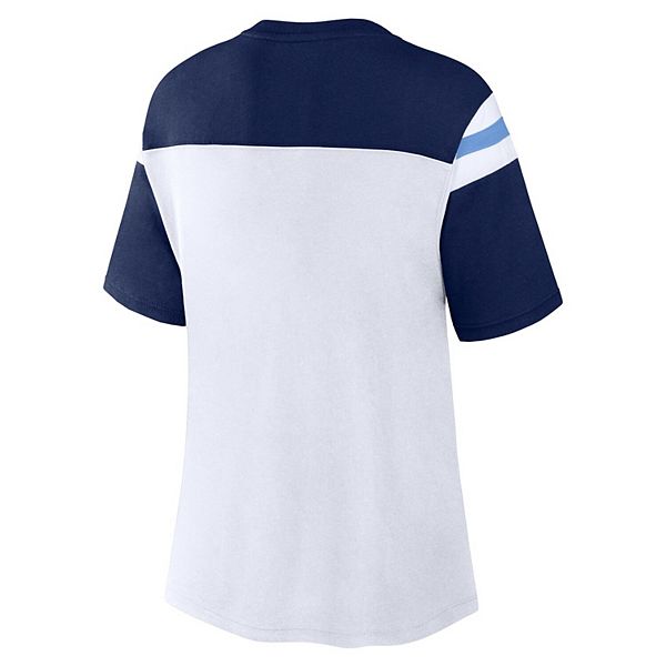 Женский бело-синий фэшн-кроп-топ Tennessee Titans Cheer Chant Fanatics