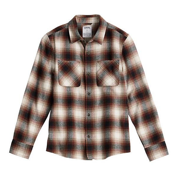 Фланелевая рубашка с длинным рукавом для мальчиков 8-20 лет, regular & husky Sonoma Goods For Life, Navy Brown Plaid