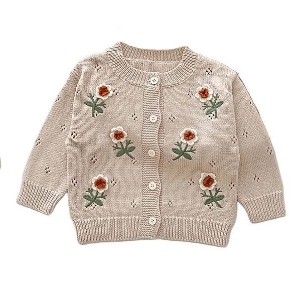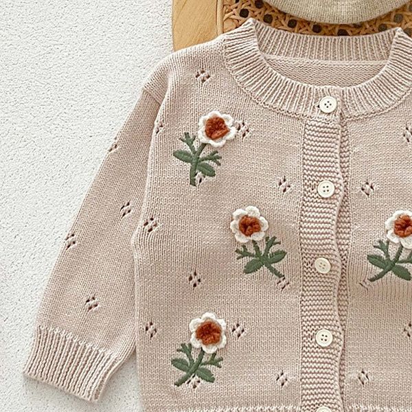 Представляем элегантный осенний кардиган для девочек. Изготовленный из комфортной трикотажной ткани и украшенный красивой цветочной вышивкой, этот кардиган с длинными рукавами идеально подходит для прохладных дней. Подарите вашей малышке нотку роскоши с этим эксклюзивным и стильным дополнением к ее гардеробу.