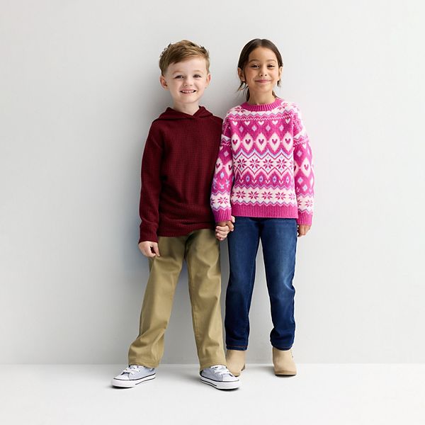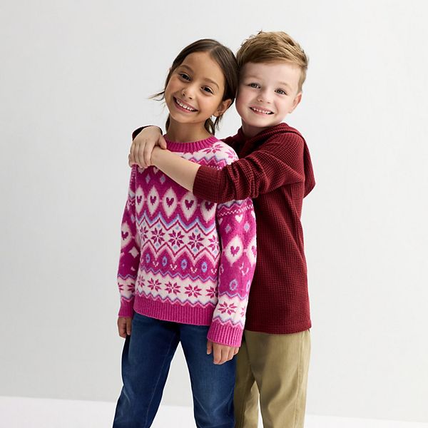 Оживите ее летний гардероб этим очаровательным пуловером с круглым вырезом и восхитительным жаккардовым узором. Идеально подходит для ношения поверх любимых топов или в сочетании с уютными леггинсами, этот игривый свитер от Jumping Beans обеспечит тепло и стиль как в школьные дни, так и в выходные дни.