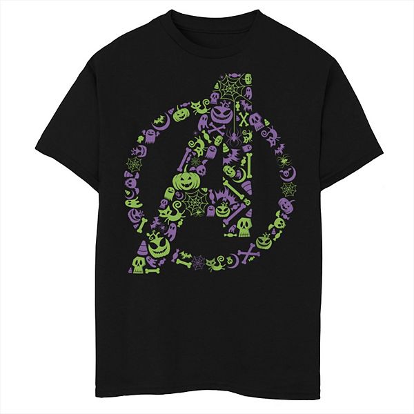 Ему понравится внешний вид и качество этой детской футболки с изображением жутких фигурок Мстителей из Marvel на Хэллоуин и логотипом хаски.