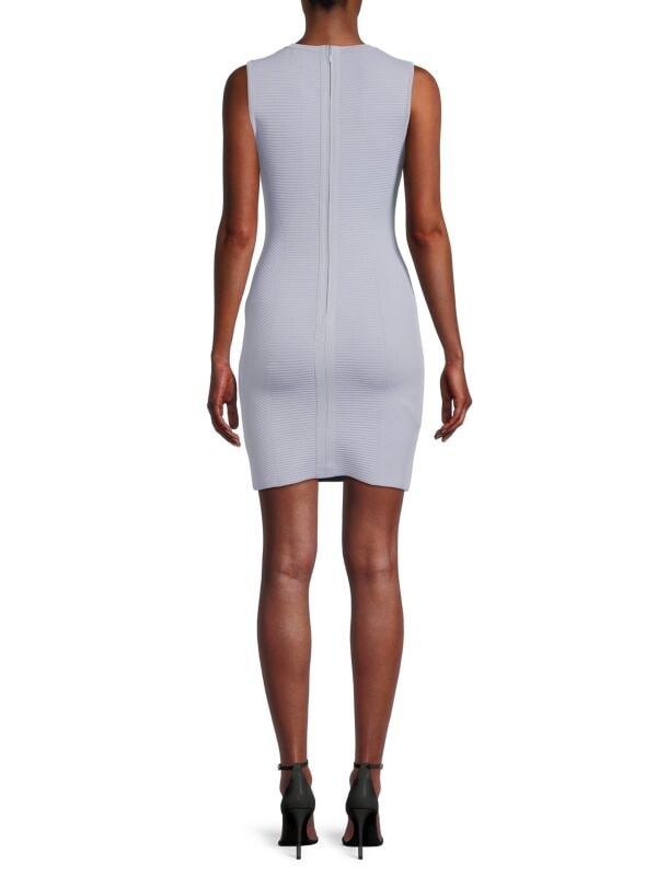 Облегающее платье Hervé Léger создано для того, чтобы подчеркнуть ваш силуэт. Модель из приятной эластичной ткани с резинкой и молнией сзади. Звезда шоу — лиф с вырезом, украшенным кристаллами. Круглый вырез. Без рукавов. Вырез спереди. Крючок сзади. и молния.