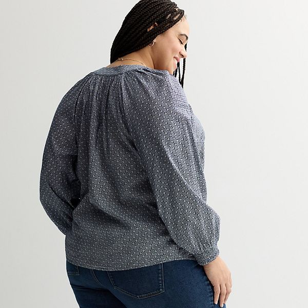 Топ с V-образным вырезом и застежкой на пуговицы, с длинными рукавами, plus size Sonoma Goods For Life, Green Jade Floral