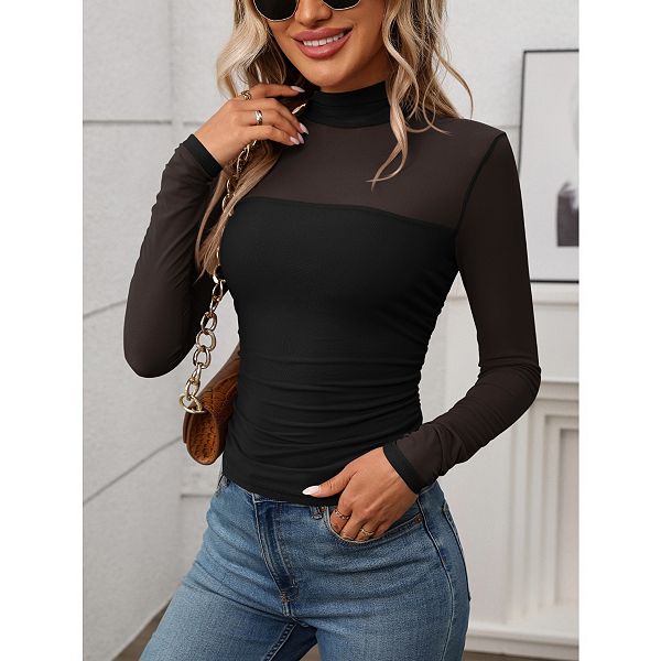 Особенности: Этот женский сетчатый топ с длинными рукавами элегантен и при этом очень изыскан. Воротник-стойка и прозрачные сетчатые рукава добавляют соблазна, а многослойные складки от груди до талии обеспечивают более удобную посадку.