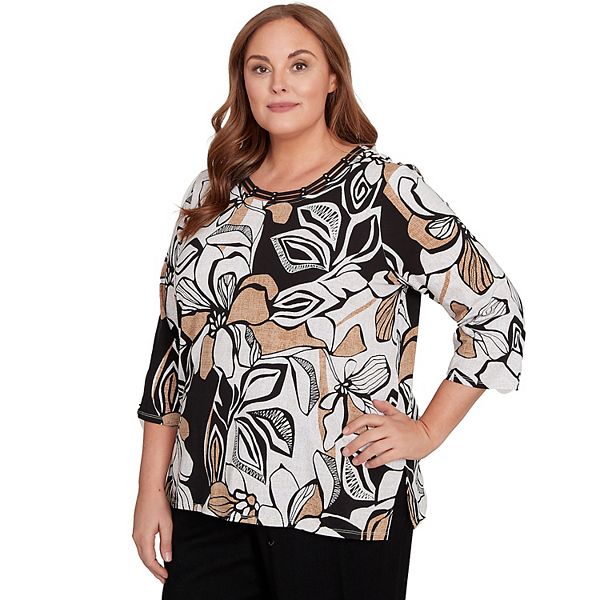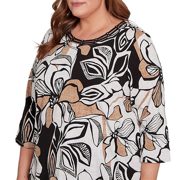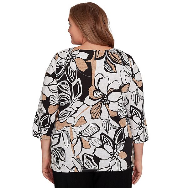 Топ Plus size с цветочным принтом и листьями Alfred Dunner