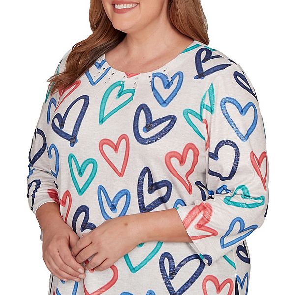 Топ Plus size с узором в виде разбросанных сердечек Alfred Dunner