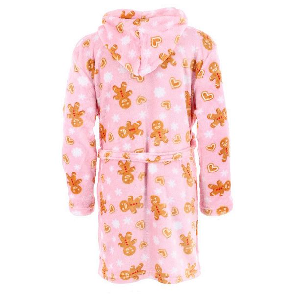 Окутайте ее уютным праздничным настроением с этим мягким плюшевым халатом для девочек! Из мягкой, приятной на ощупь розовой ткани, он украшен забавными пряничными человечками, что добавляет веселья и праздничного настроения. Пришитый капюшон обеспечивает дополнительное тепло и комфорт, делая его идеальным для прохладных утренних часов, объятий после купания или отдыха дома в праздничном стиле. Мягкий, теплый и невероятно милый, этот халат - незаменимый аксессуар для праздничного комфорта на протяжении всего сезона.