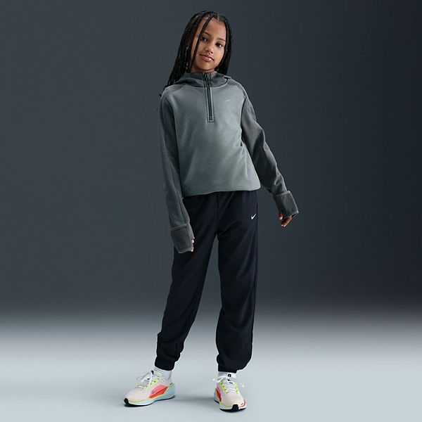 Согрейте своих детей в холодную погоду с помощью этой легкой футболки, созданной на основе технологии Nike Therma-FIT, которая обеспечивает сохранение тепла без лишнего объема. Удобная застежка-молния на четверть длины позволяет регулировать поток воздуха, а отверстия для больших пальцев обеспечивают дополнительную защиту и надежную фиксацию, что делает ее идеальной для всего: от школьных дней до выходных приключений.