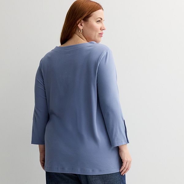 Туника с рукавами на пуговицах Plus size Croft & Barrow, Light Blue