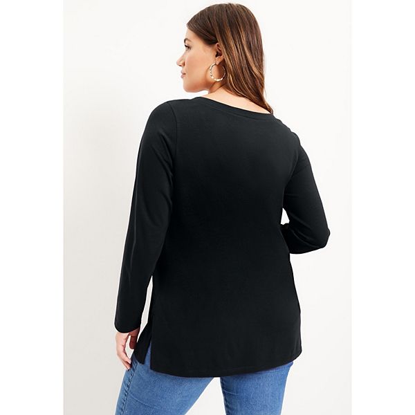 Туника June + Vie с длинным рукавом и V-образным вырезом, plus size June & Vie, Navy