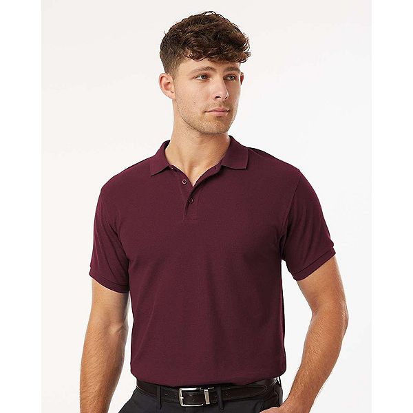 6 унций/ярд (США), 10 унций/л ярд (Канада), пике 65/35 полиэстер/хлопок. Стандартный крой. Не мнется. Не пачкается. Ребристый воротник. Три пуговицы в тон. Отрывная этикетка для удобства и повторной маркировки.