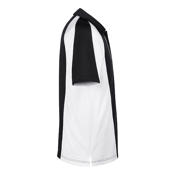 6,5 унций/ярд/225 г/м² (США), 10,9 унций/л/ярд (Канада), 100% Полиэстер. Джерси Snag Protection Plus. Влагоотводящие свойства. Антимикробная обработка. Воротник из основной ткани со встроенными фиксаторами. Боковые разрезы. Застежка на три пуговицы с контрастной внутренней отделкой. Контрастные перламутровые пуговицы, контрастная окантовка и цветовые блоки. Защита от УФ-излучения 15-39.