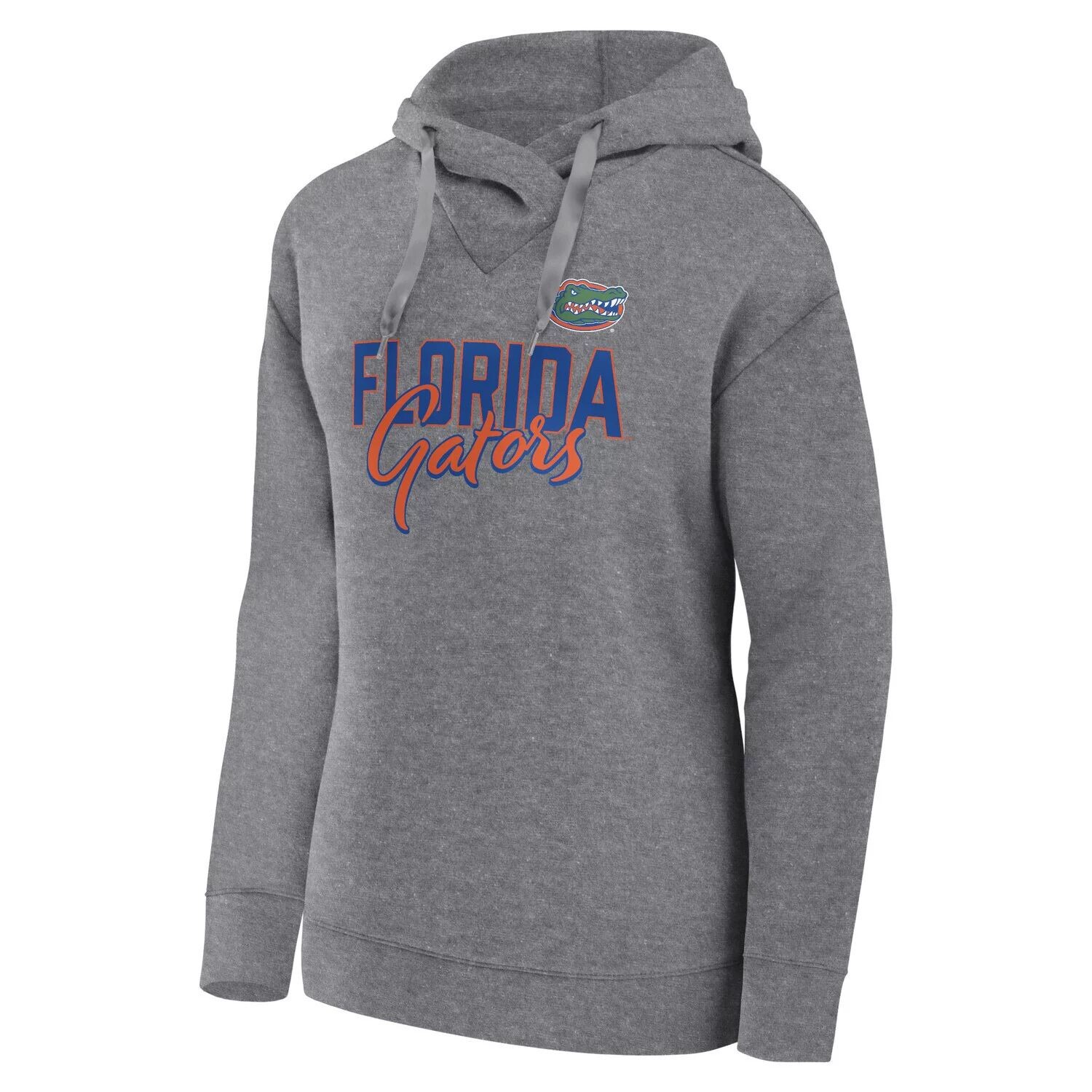 Женский пуловер с капюшоном Fanatics с логотипом Heather Grey Florida Gators Script Favorite Fanatics
