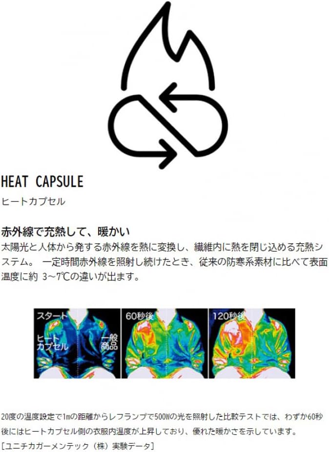 Нагревательная капсула: нагревается инфракрасным излучением, обеспечивая разницу температур поверхности примерно в 5,4-12,6 °F (3-7 °C) по сравнению с обычными материалами для холодной погоды. Антистатическое покрытие: уменьшает дискомфорт от статического электричества.