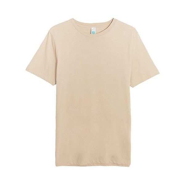 5,6 унций/ярд, 100% чесаный хлопок кольцевого прядения; 20 нитей. Усадка менее 5%. Двойная строчка на рукавах, нижнем крае, плечах и пройме. Укрепляющая лента от плеча до плеча. Боковые швы. Отрывная этикетка.