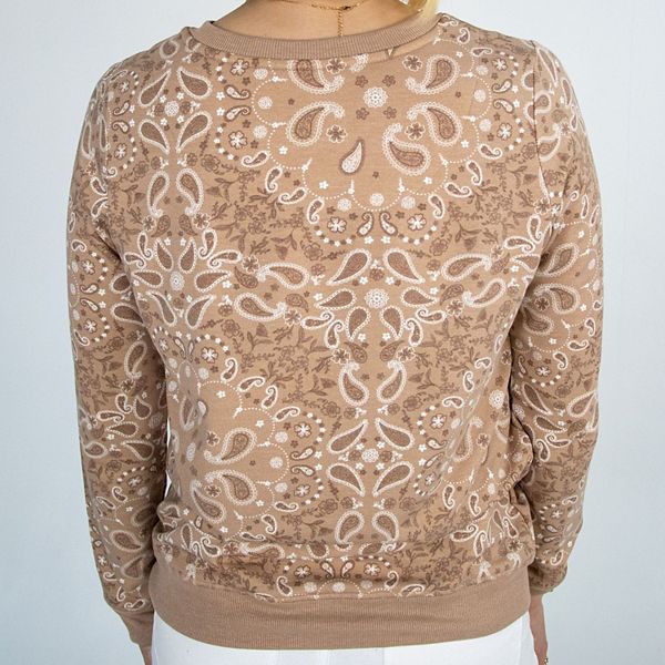 Добавьте немного узора в свой гардероб с помощью нашей футболки-свитшота Libby Bandana Crewneck. Узор в виде банданы по всей поверхности, выполненный в бежевом цвете, добавит яркий акцент в ваш образ, сохраняя при этом нейтральный стиль. Мягкая флисовая ткань идеально подходит для комфортного ношения в любой повседневной ситуации.