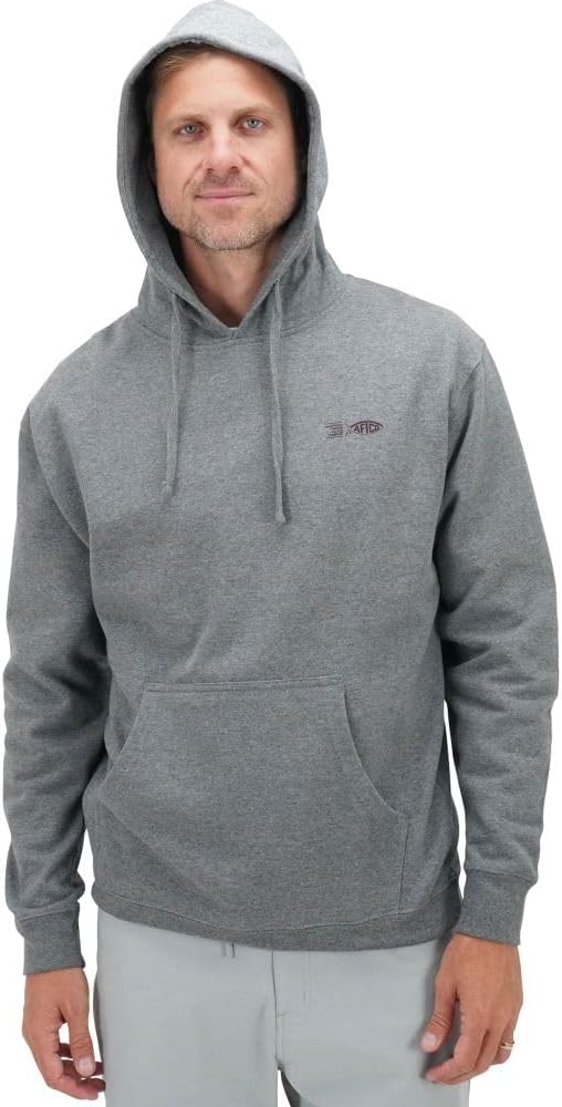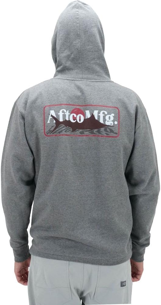 На спине этой толстовки изображен логотип AFTCO MFG и принт Marlin.